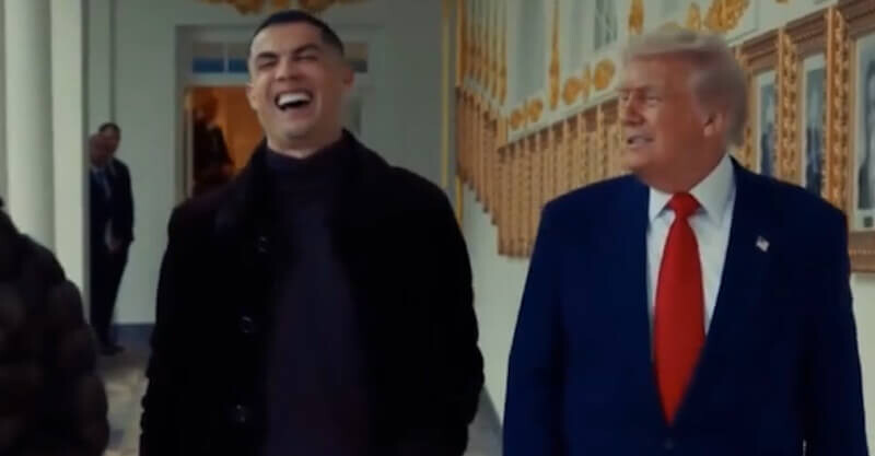 Nas imagens, Ronaldo surge bem-disposto, sorridente e lado a lado com o presidente norte-americano, caminhando com naturalidade ao longo de um corredor. Ao seu lado, Georgina Rodríguez acompanha o craque português, que parece visivelmente descontraído no breve registo captado.